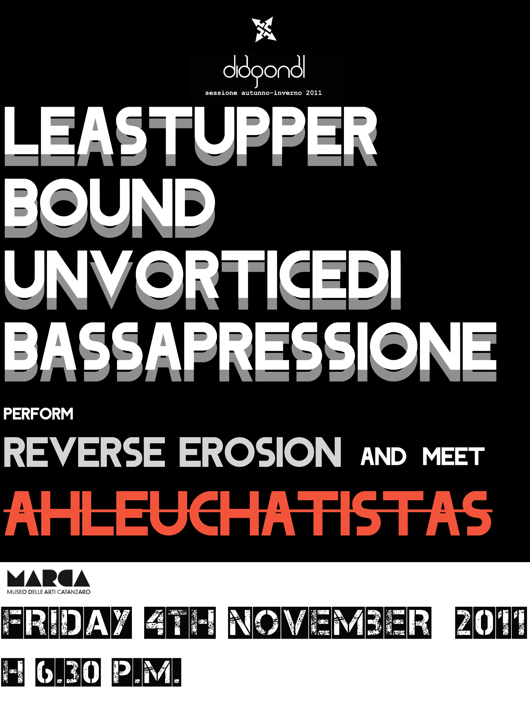 Attilio Novellino will play live with Leastupperbound@Marca Museum – Diagonal 2011 The end of set will be an improvisation with Ahleuchatistas(U.S.A.)